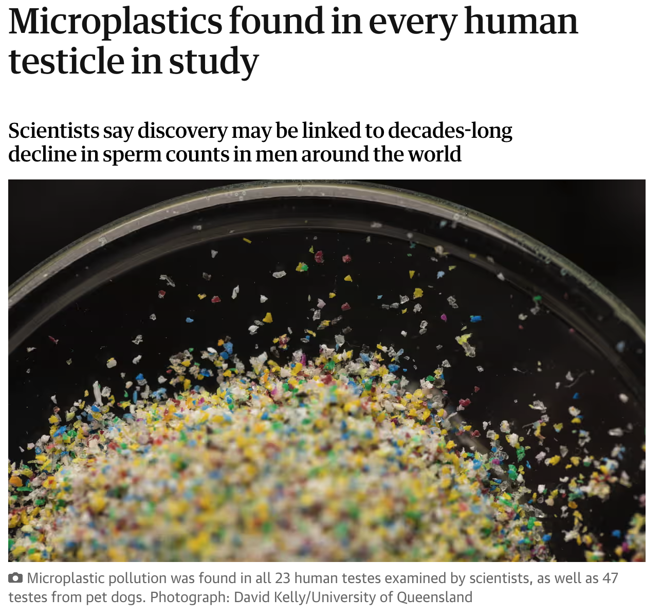 Carrington, D. (2024b, May 20). Microplastics found in every human testicle in study. The Guardian. https://www.theguardian.com/environment/article/2024/may/20/microplastics-human-testicles-study-sperm-counts